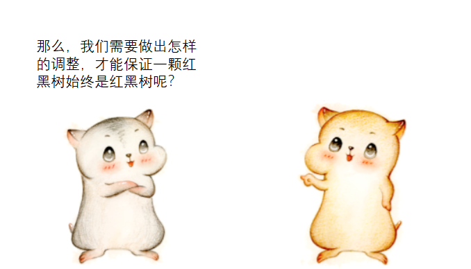 为了重新符合红黑树的规则,尝试把红色结点变为黑色,或者把黑色结点变为红色。