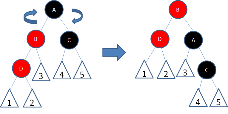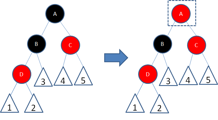 接下来,我们让结点B变为黑色,结点A变为红色: