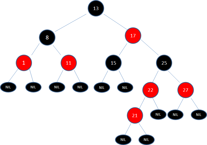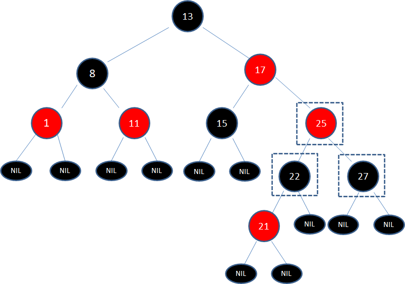 于是我们经过三次变色,22变为黑色,25变为红色,27变为黑色: