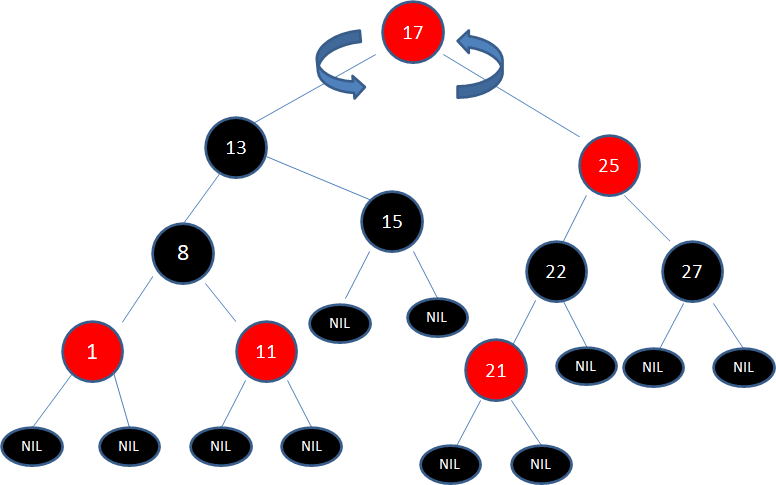 于是我们以根结点13为轴进行左旋转,使得结点17成为了新的根结点:
