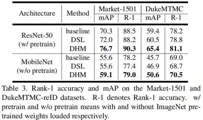 其次,作者给出了Market1501数据集上的性能对比,见下图。结论同前,不再赘述。
