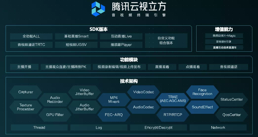 在过去的两年里,长短视频持续发力,直播产业日益成熟,5G网络不断落地,播放设备清晰度逐渐提升,这些因素的交织之下,用户对于更低时延、更加高清、更为沉浸的需求就更加明显。可是音视频技术的升级是一种系统性的提升,单纯的依赖于终端、应用或者网络都不现实。当潮水退去,企业需要进一步提升的还在于底层和平台,这其中包括了实时音视频传输、编解码、场景化渲染、AI特效、RTC/IM等诸多技术的升级,也包括了海量SDK接入的问题。