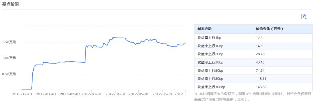围绕组合的利率风险,萝卜投资开发了基点价值测算工具,用以衡量当市场利率变动了不同水平时,组合价值的变动情况。