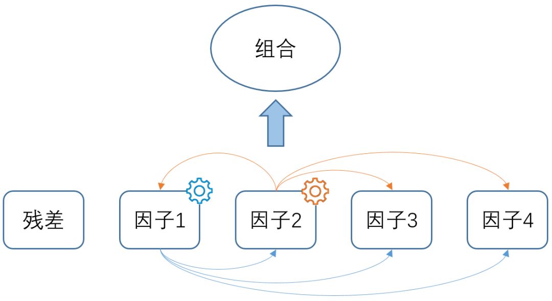 图2给出了一个示例。示例中的组合受到4个风险因子的影响,如果因子1和因子2发生变化,那么因子3和因子4由于受到相关性影响也会发生变化。通过上文描述的方法,我们可以测算各个因子受影响的程度,并最终估算出组合的业绩变化。