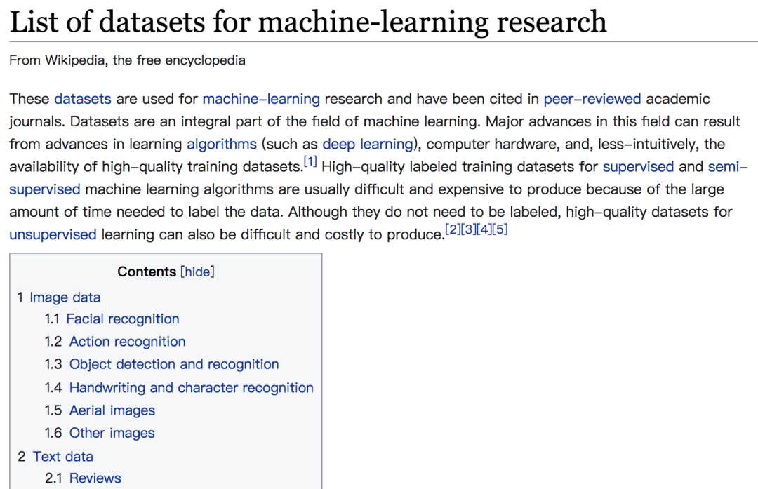 网址:https://en.wikipedia.org/wiki/List_of_datasets_for_machine-learning_research