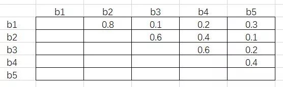 接下来将这个矩阵的下三角和对角线元素删去,得到下面的结果: