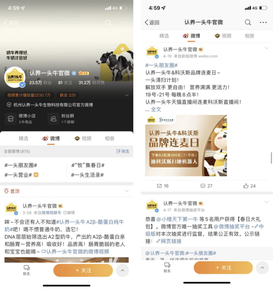 认养一头牛在电商平台和主流公私域平台都进行了全面的运营,构建了一个庞大的流量池,为私域引流做足了储备。