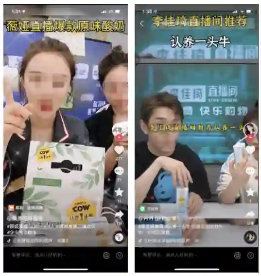 主播直播带货:认养一头牛也十分注重直播效应,请过薇娅、李佳琦等大主播为其带货。