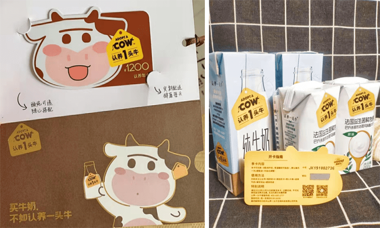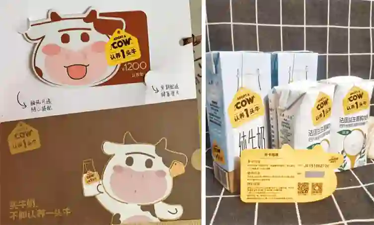 第三种则是实名认养,用户可以在专供牧场提前一年预订牛奶,顶级会员甚至还能给奶牛取名字,并获得奶牛的照片和生长数据等等。