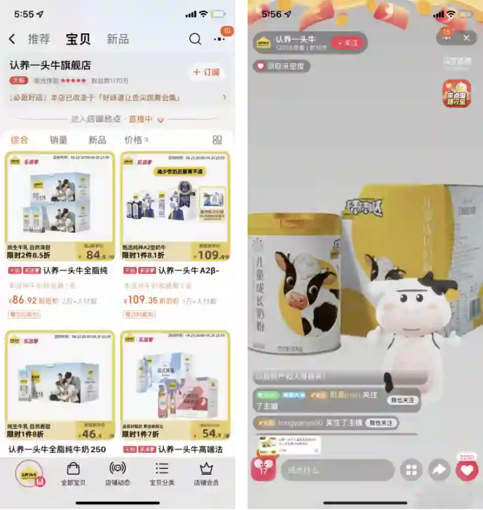 2019年实现整体销售额突破5亿元,2020年双11,“认养一头牛”成为天猫乳品行业首个销售额破亿店铺,位列旗舰店销售额TOP1。据统计,认养一头牛私域营收突破5000万元,截止2021年11月,拥有2500万粉丝和1400万会员。