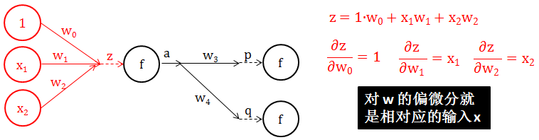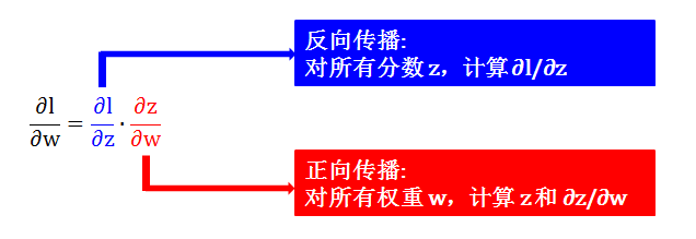 反向传播就是把权重当未知量从尾推到头得到偏导数