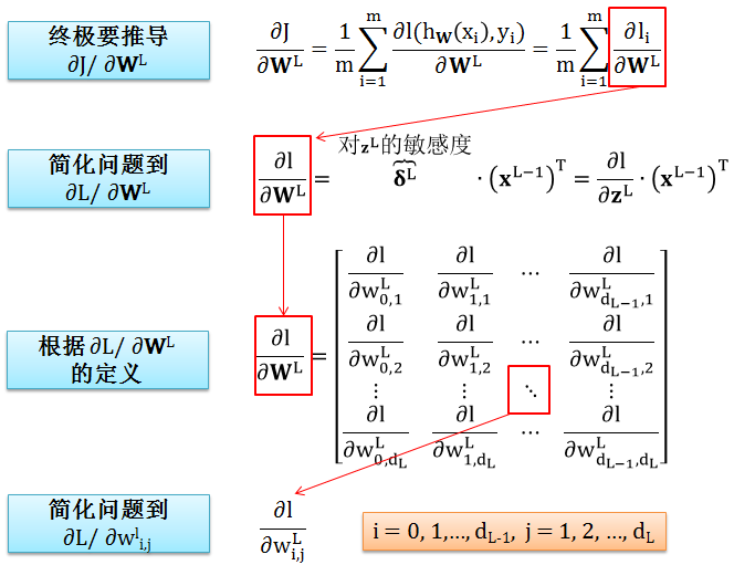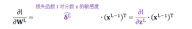 由于 ∂l/∂WL 是矩阵,将其进一步拆分成 ∂l/∂wLi,j。即一个纯量权重 wLi,j。