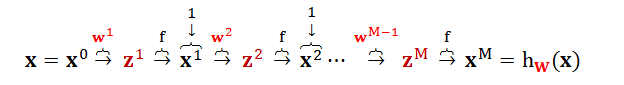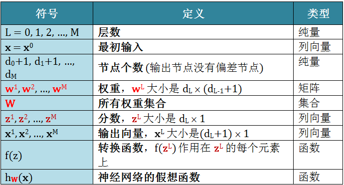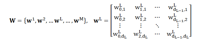 神经网络的每层用 L 表示,其中 L = 0, 1, 2, …, M.