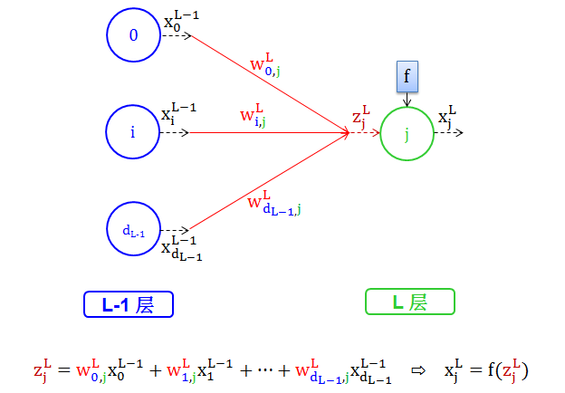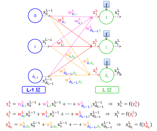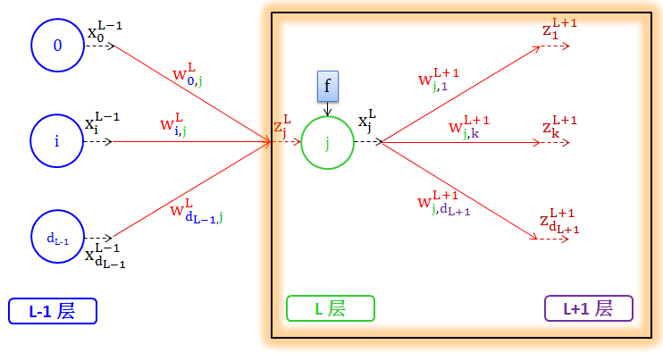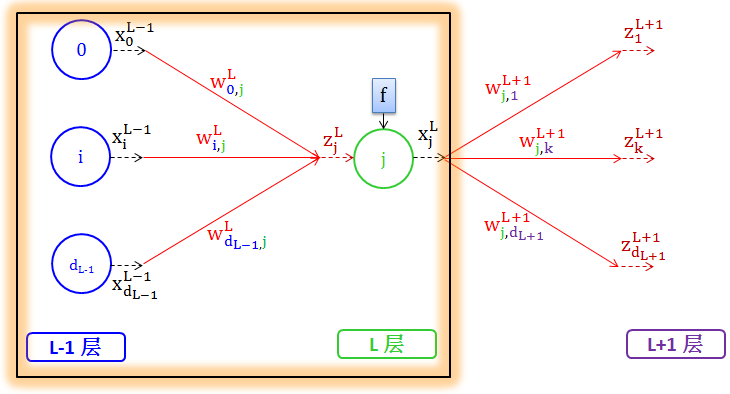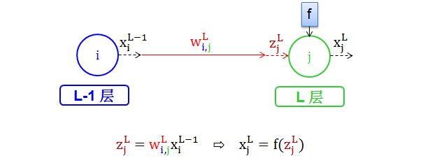 wLi,j 是权重,来自 L-1 层的节点 i,去向 L 层的节点 j