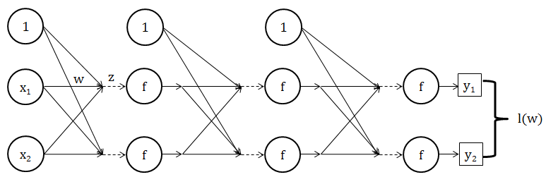 除输出层的每一层都有一个特殊的节点叫做偏差节点 (bias node),该节点没有输入箭头 (incoming arrow) 只有输出箭头 (outgoing arrows)