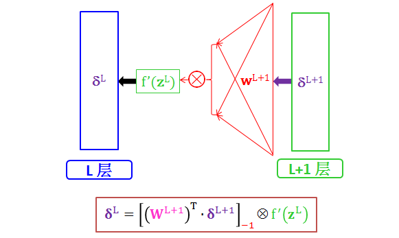 从 L+1 层到 L 层反向传播算法,其流程图如下:
