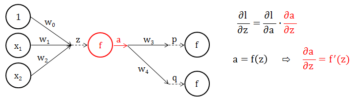 a 是什么?a 不就是分数 z 经过转换函数 f 加工出来的输出吗?因此 a = f(z),那么 ∂a/∂z = f’(z)