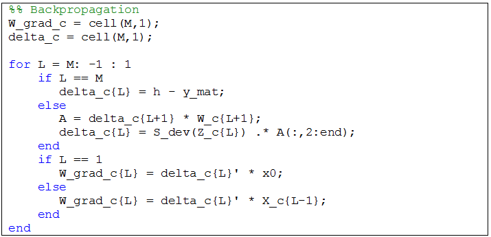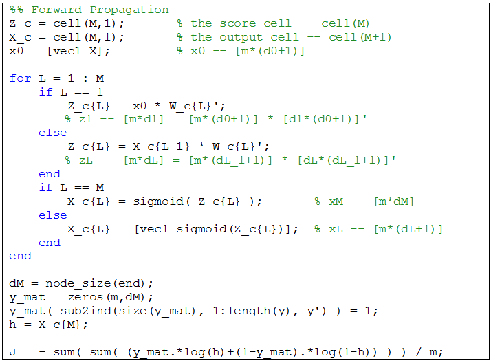 元胞数组的意思就是 W_c 有 n 个元素,每个元素都可以是一个大小不一的矩阵。完整代码如下: