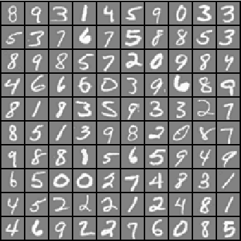 数据集有 5000 个示例,上图是随机打印出来其中的 100 个:
