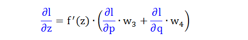 ∂l/∂p 和 ∂l/∂q 是后一层的 l 对分数 p 和 q 的偏导数