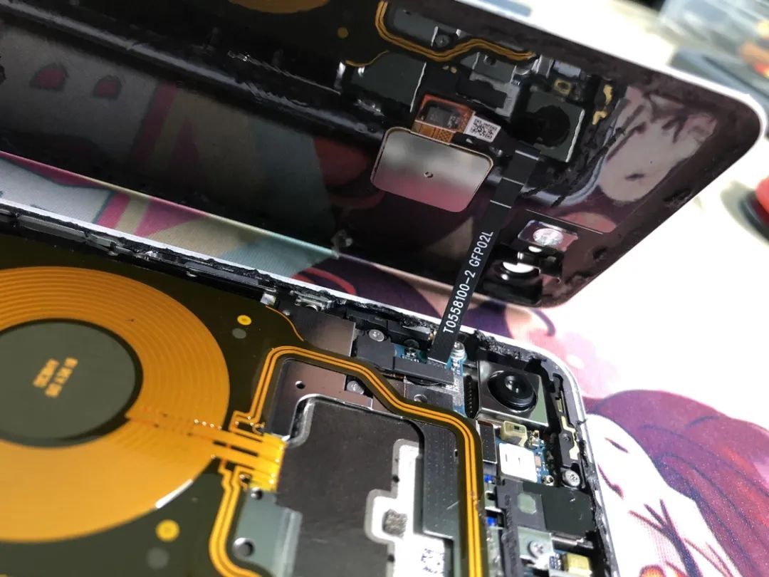 类似 Pixel 使用背部指纹并且有防水等级的手机(e.g. Galaxy S10 以前的三星)往往会把指纹模组直接粘在后盖上,抬起的时候要像拆解 iPhone 5S 那样注意分离角度以免扯断指纹传感器的排线。不过市面上把生物传感器和手机绑定的公司除了苹果之外别无二家,所以即使不小心扯断了排线也可以很容易地买到备件,价格普遍都在 50 块钱以内。