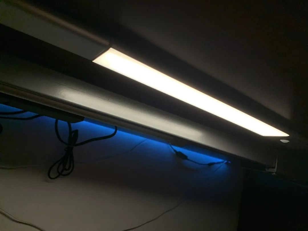 作为是事逼的我,还为了晚上方便清洁桌面底部和调整脚部按摩器的模式的能见度,在桌面底部加装了自带人体感应器的磁吸式 LED 灯,为桌面的舒适性加多一分。