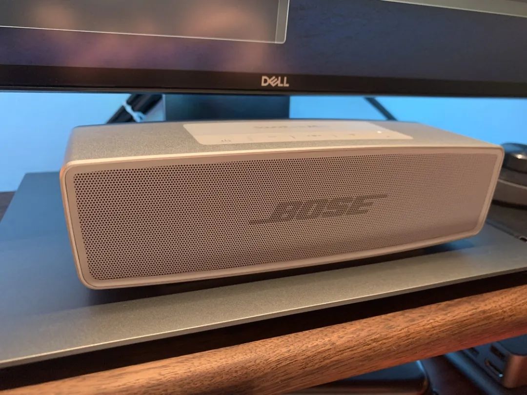 在选择桌面音箱的时候,首选支持蓝牙和 AUX 两种连接方式的音响,这样的话既可以保证设备连接的灵活性以及观看视频内容的时候,不会因为无线连接的延时而导致的音频延时。考虑到桌面面积以及预算的原因,放弃了 Bose Bose Soundlink Revolve + 和 HomePod(本身也不支持 AUX 连接),最后选择了比较老的 Bose SoundLink Mini II,对比一代整体外观设计没有变化,但取消了充电底座,取而代之的是充电接口把之前的 microUSB 更新为 Type-C。