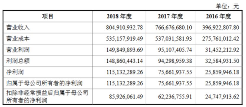 华文食品的招股书显示,2016年至2018年,华文食品营收分别为3.97亿元、7.67亿元、8.05亿元;归属于母公司所有者的净利润分别为2586万元、7566.19万元、1.15亿元;主营业务毛利率分别为30.19%、29.61%、33.12%。