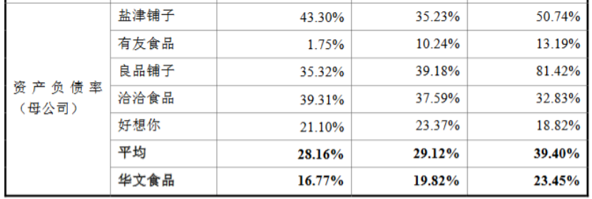 从1.6亿的募资规模来看,华文食品显然没有上市的必要,该公司一年净利润就有1.15亿,母公司资产负债率仅有16.8%,远低于可比公司(盐津铺子、良品铺子、洽洽食品等)平均水平。