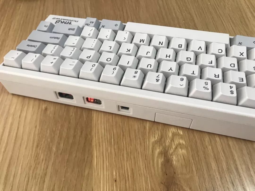 但和以上两点相比,我更不能接受的是需要搭配一根数据线 + USB 转 Type-C 的接口才能在 MacBook Pro 上使用的非蓝牙款 HHKB。