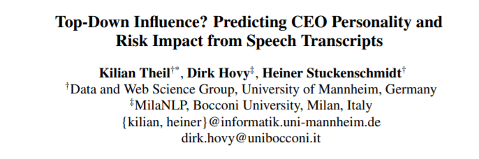 程序员总喜欢说:「Talk is cheap,show me the code」。但实际上,Talk有时候不仅不便宜,而且甚至是「一句千金」。对于大公司的CEO们来说,更是如此,他们在各种场合和社交媒体上的只言片语,都可能会让资本市场掀起滔天巨浪。2021 年 11 月,马斯克 (Elon Musk) 邀请他在推特上的 7000 万粉丝参与投票,决定他是否应该出售自己在公司的 10% 股份。此推文发出后,特斯拉股票的市值损失了大约 210 亿美元。事实上,马斯克在社交媒体上长期口无遮拦,导致特斯拉股价在 2021 年底暴跌 1750 亿美元。长期以来,人们一直认为CEO 的行为与公司业绩有直接关系,但让亿万富翁高管进行标准化性格测试的可能性并不大,这使得基于性格的股票价格预测实际上成了伪科学。迄今为止,关于这方面的研究主要集中在 5 大人格特质上,将 CEO 的性格被评估为开放性、尽责性、外向性、随和性和神经质五种特质。仅基于语音和文本,以经验丰富的方式提取所有这些特征并不容易。管理学院2020 年的一项研究只能分析 5 大特质中的三个(责任心、神经质和外向),因为开放性和随和性更难识别,尤其是从文本数据中。