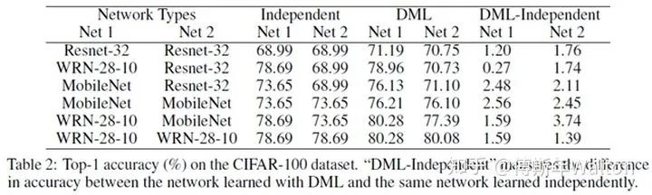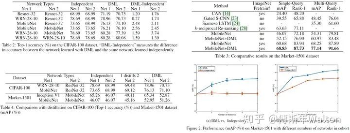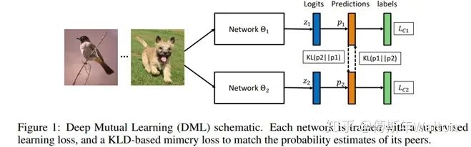 本文打破这种预先定义好的“强弱关系”,提出DML,即让一组学生网络在训练过程中相互学习、相互指导,而不是静态的预先定义好教师和学生之间的单向转换通路。