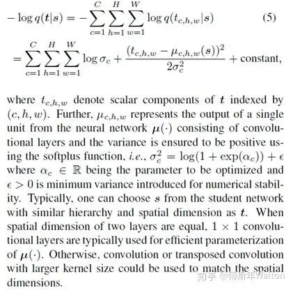t代表教师网络的中间层,s代表相对应的student网络的中间层,c,h,w分别对应channel,height,width;q(t|s)是variational distribution变异分布,公式如图所示,是一个高斯均方差分布和标准差之和。
