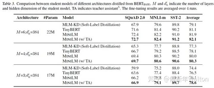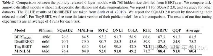 2. 在目标任务的数据集上fine-tunestudent模型实验结果: