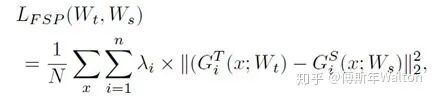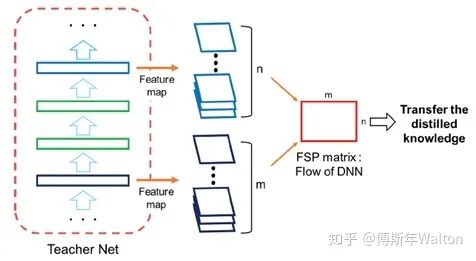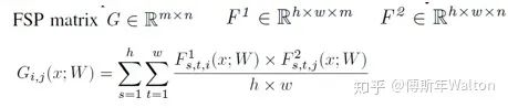 Gram matrix的每个值都可以说是代表i通道的feature map与通道j的feature map互相关的程度。x代表输入图像,W代表FSP weights,F1/F2是产生的feature map,h*w代表feature map的height, width;m/n代表channel。
