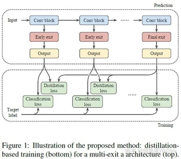 大致思路:作者借鉴muti-exit architectures去做ensemble distribution KD,扩展提出新的损失函数。