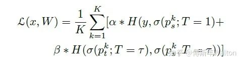 最后训练的loss函数是两个学生网络分别训练,各自的cross-entropy Loss和KL散度Loss之和。
