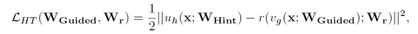3. 阶段一训练,最小化特征损失函数,uh表示teacher模型从第一层到第N层对应的函数,vg表示student模型从第一层到第M层对应的函数,r表示卷积层调整器,对应的参数记为Wr。