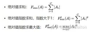 2. 为了计算loss,每个part的最后一个卷积层C个W * H的特征图变换为1个W* H的的二维张量,为了定义这个空间注意力映射函数,一个潜在假设是,隐层神经元激活(网络在预测时的结果)的绝对值可以用于指示这个神经元的重要性,这样我们可以计算通道维度的统计量, 具体而言,我们考虑如下如下三种空间注意力图: