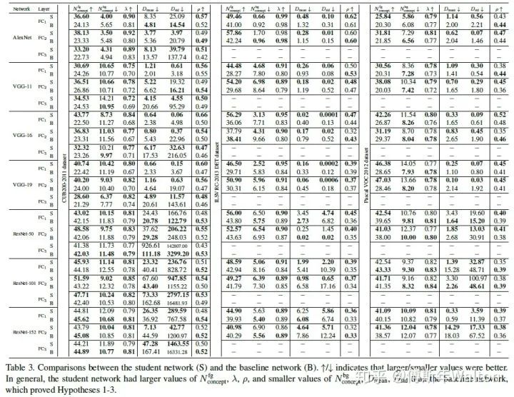 总结下,就是越小的Dmean 和 Dstd意味着DNN学习visual concepts越快越同时。具体请看最后试验结果汇总表3。