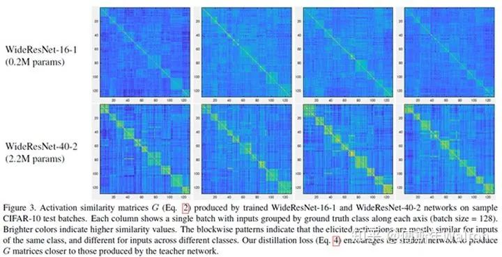 如果两个输入在老\师网络中有着高度相似的激活,那么引导学生网络趋向于对该输入同样产生高的相似激活(反之亦然)的参数组合,那将是有利的(对于学生更好的学老\师网络的能力与知识)。