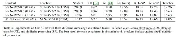 • 这样的现象也在一定程度上支撑了本文的假设,也反映出前面提出的相似性损失的意义与价值所在,就是促使学生网络可以更好的模仿学老师模型对于数据特征中的关联信息的学习。