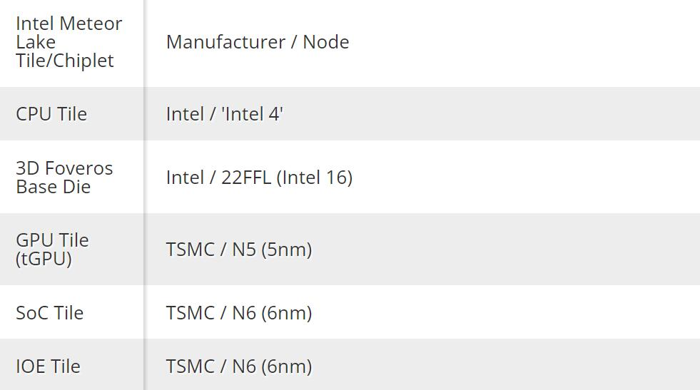 值得注意的是,这一次英特尔将只生产用于构建其 Meteor Lake 芯片的四种组件中的一种(CPU 部分)——台积电将生产另外三种。业内消息人士指出,GPU tile 是 TSMC N5(5nm 制程)。