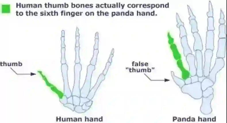 这块骨头实际上是一节腕骨特化而来,但却能像人或猴子一样灵活方便地抓取东西。因此,大熊猫也可能以「伪拇指」代替我们人类的拇指,打出一个漂亮的响指哦。