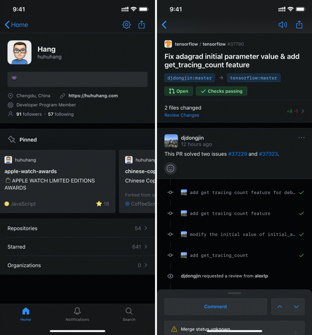 👨🏻💻 huhuhang:GitHub 是全世界最大的代码托管网站,也是很多开发者或公司发布开源项目代码的首选站点。GitHub 创立于 2008 年,今年终于迎来了其官方 iOS 和Android 应用。