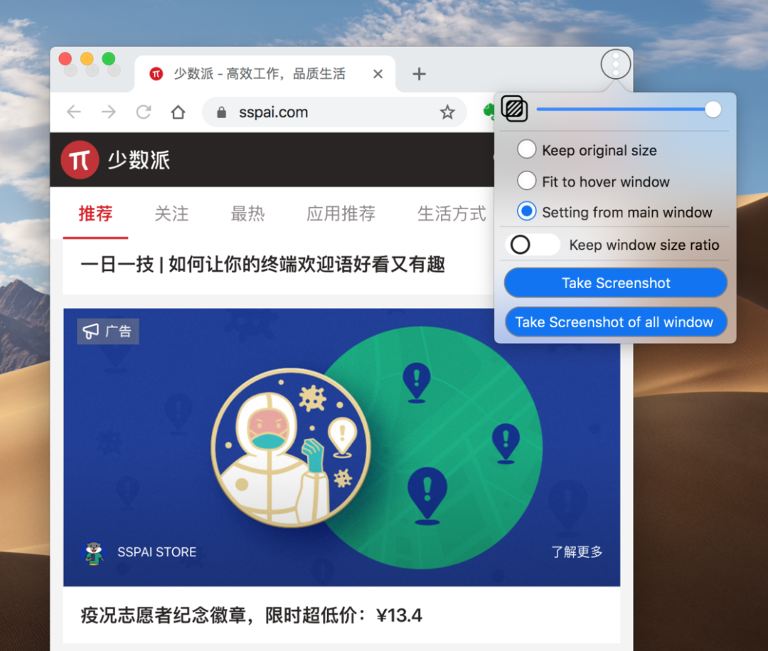 Hover-Floating Window Image 我个人使用最多的场景则是截图,这样我可以不直接在软件的窗口上截图,而是通过这个查看器窗口来截图,这样在进行截图操作时可以不对软件使用产生干扰。