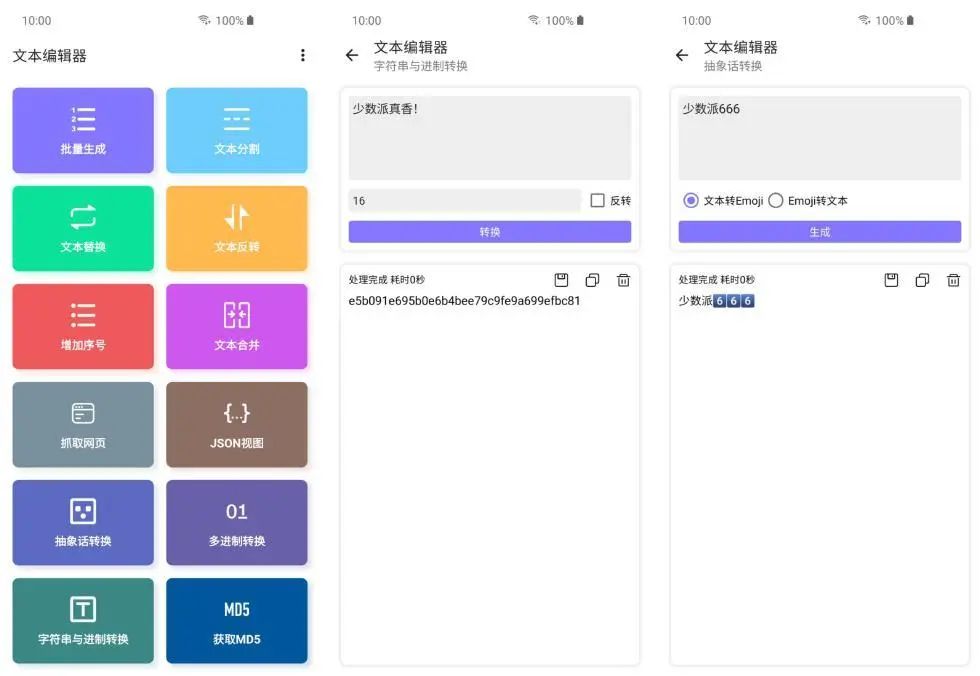 另外比较有意思的功能则是「字符串与进制转换」功能,它相当于对文本进行了简单的进制转换加密,对方可以通过反转功能解码出文本内容;「抽象话转换」功能也比较有趣,它能够识别文本中有 emoji 表情对应的部分,并替换成相应 emoji 表情,在聊天中使用应该可以带来很高的趣味性。