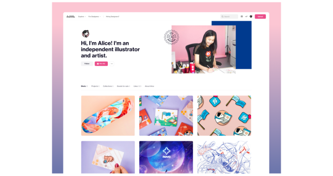 当然对于普通的 Dribbble 用户,其个人主页的界面也进行了优化——更为简洁明快,让自己的作品成为页面中的焦点。