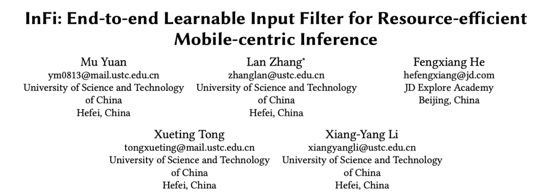 在 MobiCom 2022 上,中国科学技术大学 LINKE 实验室针对移动为中心的模型推理场景,提出端到端可学的输入过滤框架 InFi (INput FIlter)