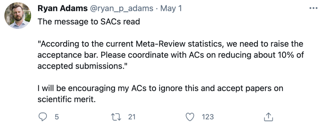 一位普林斯顿大学机器学习领域的计算机教授 Ryan Adams 透露组委会给到 SACs 的信息: